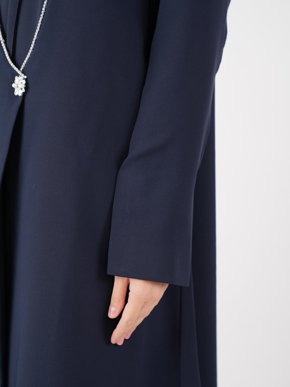 An embodiment of timeless elegance, the Midnight Grace Abaya is crafted from premium navy crepe fabric that flows effortlessly with every step. Designed with clean lines and a minimalist silhouette, it reflects refined sophistication and is suitable for daily wear and formal occasions. Its understated beauty makes it a wardrobe essential for the modern woman who values quiet luxury.